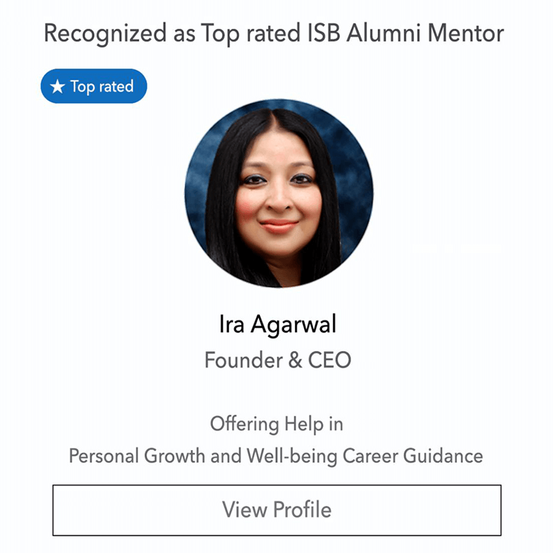 The platform is led by its Founder and CEO, Ira Agarwal, a Top Rated Executive Education Mentor at the Indian School of Business, recognized for delivering structured mentorship, measurable outcomes, and leadership excellence within the executive learning ecosystem.